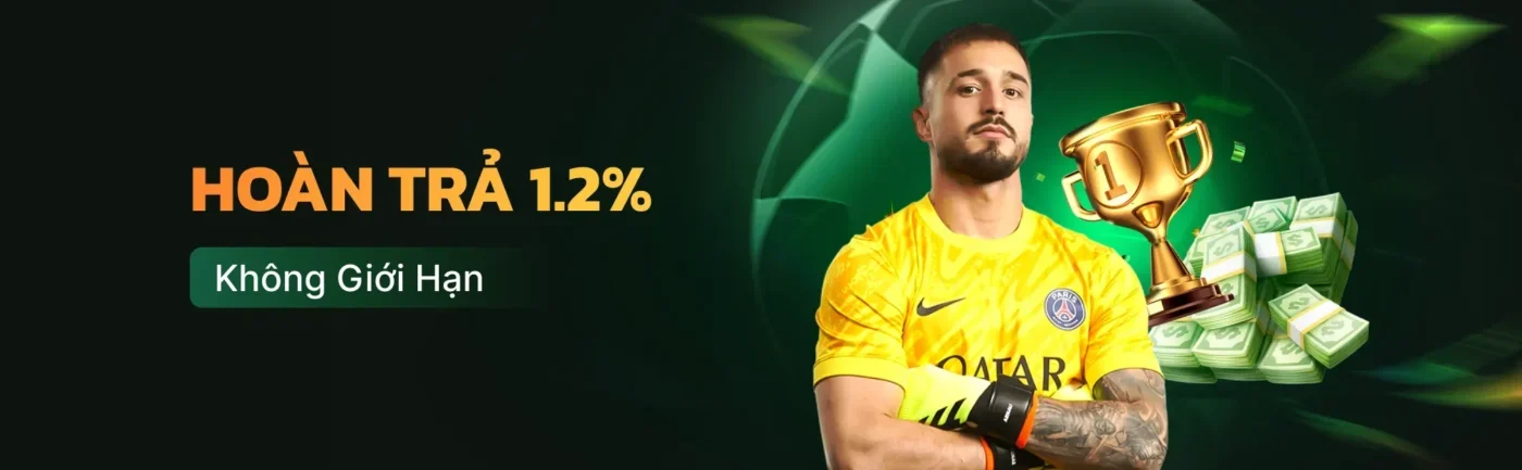 - Hoàn tiền: Hoàn tiền 1% cho slot và casino live hàng tuần.